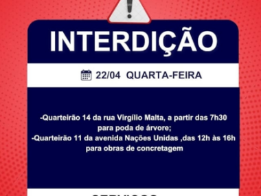 Confira as interdições da EMDURB programadas para quarta-feira (22)