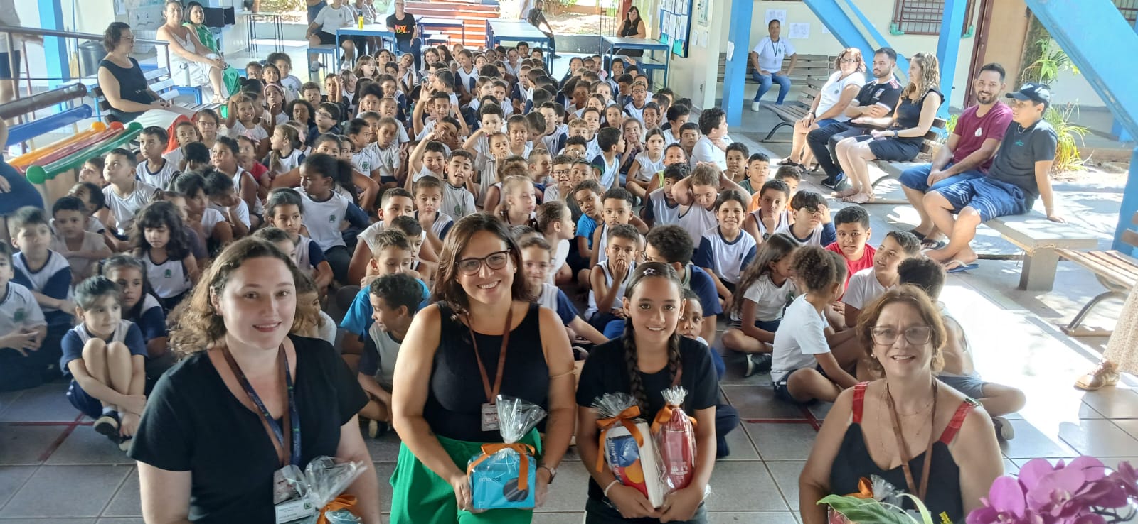 A escola foi premiada com um troféu, enquanto as profissionais e a aluna foram contempladas com dispositivos eletrônicos e kits educativos.