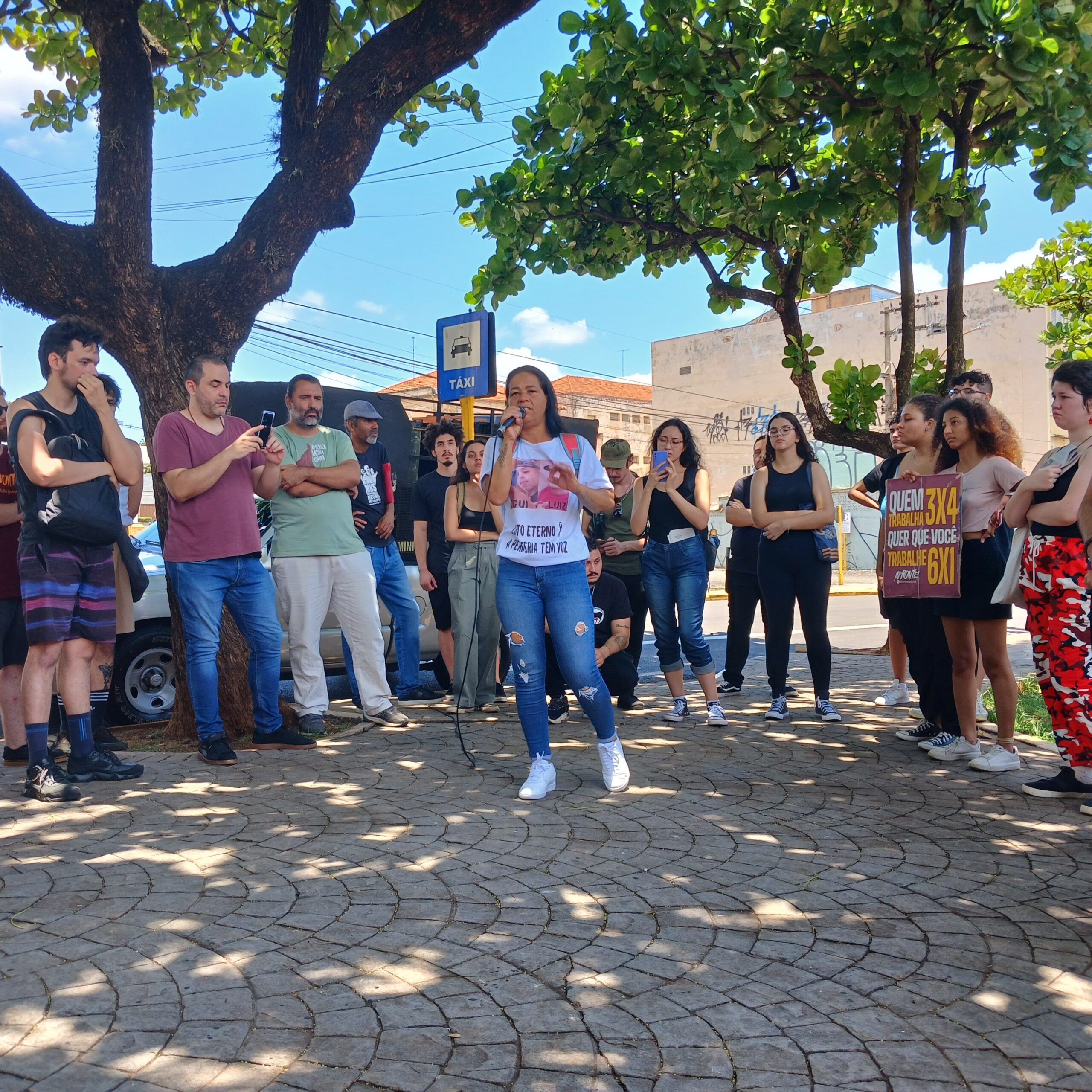 A mãe de Guilherme, Nilceia Rodrigues, esteve na manifestação pelo fim da escala 6 por 1 ocorrida na manhã desta sexta-feira (15), no Centro da cidade. Em discurso, ela convocou os manifestantes para o ato do domingo.