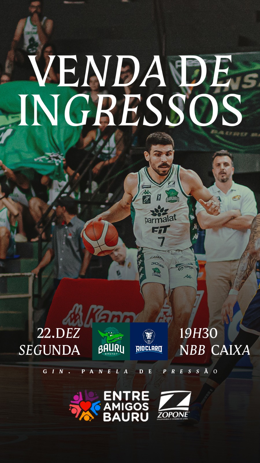 Como parte das ações de Natal, o Bauru Basket pede, de forma voluntária, a doação de um pacote de macarrão tipo parafuso ou um litro de leite. Os donativos serão destinados ao Grupo Entre Amigos, que desenvolve trabalho solidário com famílias em situação de vulnerabilidade social. A iniciativa é realizada em parceria com o Grupo Zopone.