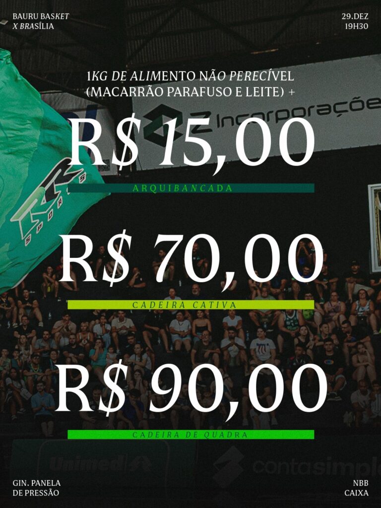 Os ingressos para a partida já estão disponíveis exclusivamente pelo site baurubasket.eleventickets.com. Os valores são: R$ 15 para o setor de arquibancadas, R$ 70 para cadeiras numeradas e R$ 90 para cadeiras de quadra.