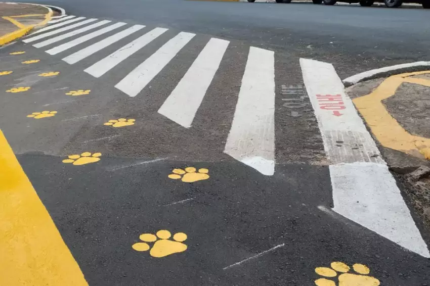 A sinalização horizontal tem como objetivo chamar a atenção dos motoristas para que tenham cuidado com os animais e os seus tutores, principalmente em locais de grande movimento.