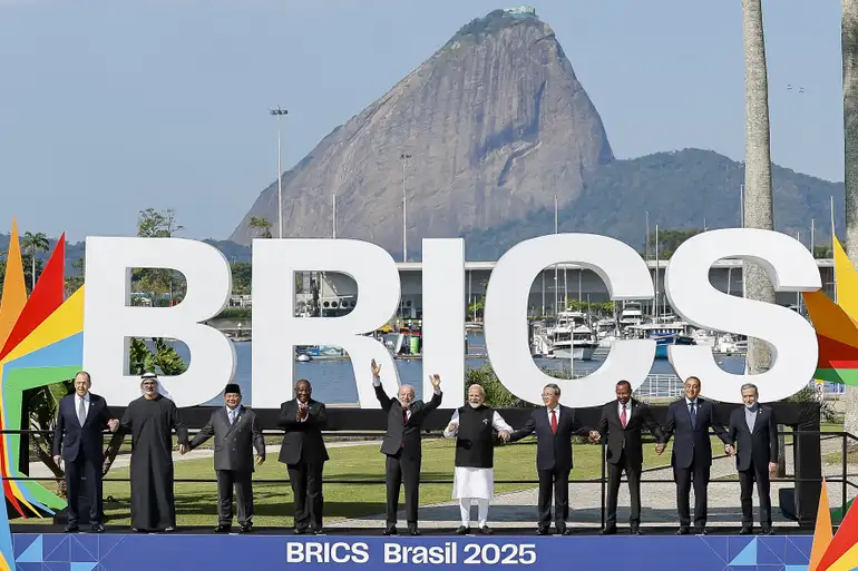 O Brics é um grupo formado por 11 países-membros e dez parceiros, que se identificam como Sul Global, nações em desenvolvimento e desafios sociais similares. A reunião de líderes acontece no Museu de Arte Moderna do Rio, uma vez que o Brasil ocupa a presidência rotativa anual do grupo.