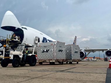 Chega ao aeroporto de Viracopos o primeiro dos 8 aviões Jumbos que trazem a Fórmula 1 ao Brasil