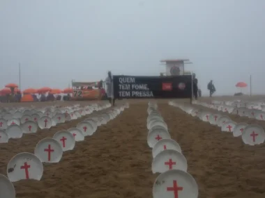 Quem passou pela Praia de Copacabana na manhã deste sábado (16) se deparou com mais de 700 pratos vazios fincados na areia. O ato que pedia o fim da fome no mundo foi uma das duas manifestações realizadas na orla...