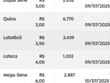 As apostas das Loterias Caixa aumentam a partir de 9 de julho. O reajuste atinge as modalidades Dupla Sena, Quina, Lotofácil, Mega-Sena, Loteca e Super Sete. De acordo com a Caixa, o reajuste busca ampliar premiações e fortalecer repasses sociais,...