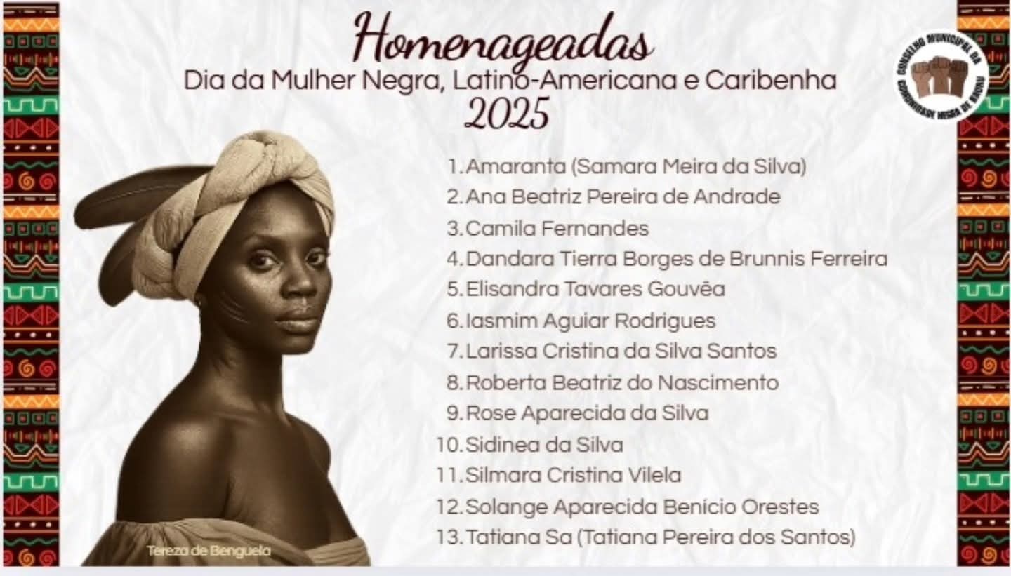 O Conselho Municipal da Comunidade Negra de Bauru realiza nesta sexta-feira (25) uma cerimônia para prestar homenagens ao Dia da Mulher Negra Latino-Americana e Caribenha, a partir das 19 horas, no Teatro Municipal Celina Neves, localizado na Avenida Nações Unidas, quadra 8.