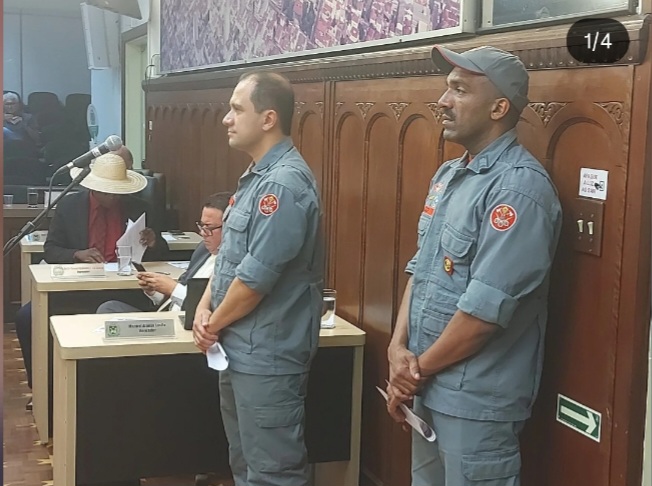 O capitão Félix e o sargento Diego, ambos do 12ª Grupamento do Corpo de Bombeiros de Bauru, estiveram, na tarde desta segunda-feira (15) no plenário da Câmara Municipal. Eles vieram agradecer as emendas impositivas apresentadas pelos parlamentares em 2024 e que estão sendo executadas este ano.