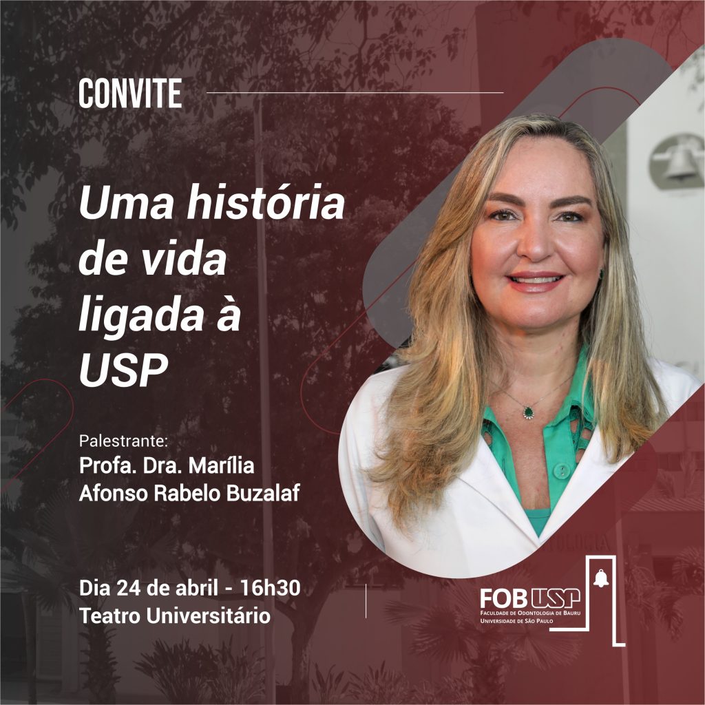 Com o tema “Uma história de vida ligada à USP”, a diretora da Faculdade de Odontologia de Bauru da Universidade de São Paulo (FOB-USP) Marília Afonso Rabelo Buzalaf irá ministrar no próximo dia 24 de abril palestra motivacional aberta à comunidade do campus USP de Bauru.