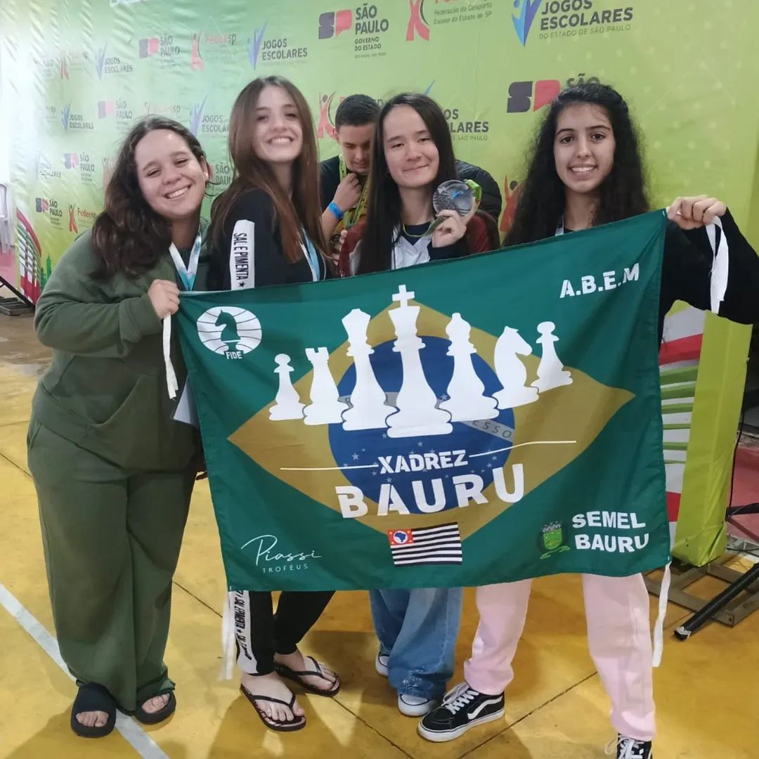 A Escola Técnica Estadual (Etec) “Rodrigues de Abreu” de Bauru está em festa. Quatro alunas – Rafaella, Nicole, Karen e Jéssica, acompanhadas do Prof. Antonio Monteiro, representaram com sucesso a instituição de ensino nos Jogos Escolares do Estado de São Paulo (JEESP) 2025, na modalidade xadrez, fase estadual, no município de Praia Grande.