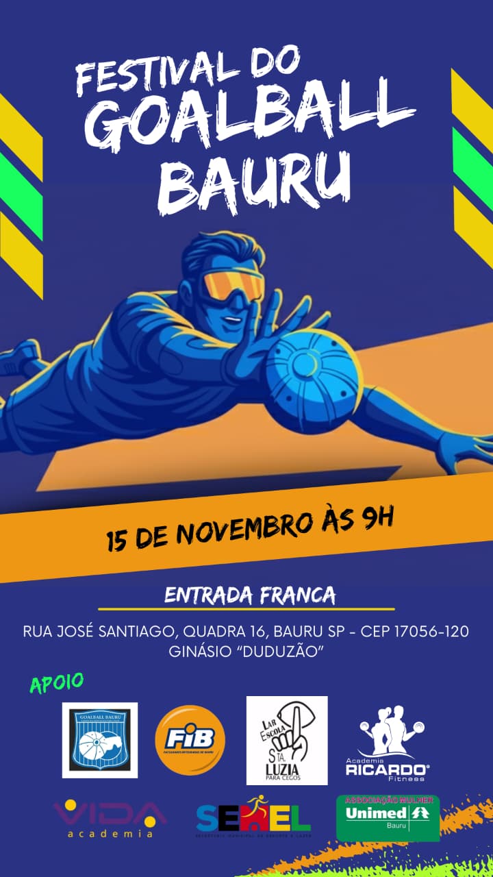Neste sábado (15), o ginásio Duduzão da FIB, Faculdade Integrada de Bauru, promoverá o Festival de Goalball, uma iniciativa do Lar Escola Santa Luzia para Cegos. O evento terá apoio da Secretaria Municipal de Esportes e Lazer, a Associação Mulher Unimed, a FIB e às Academia Ricardo Fitness e a Academia Vida.