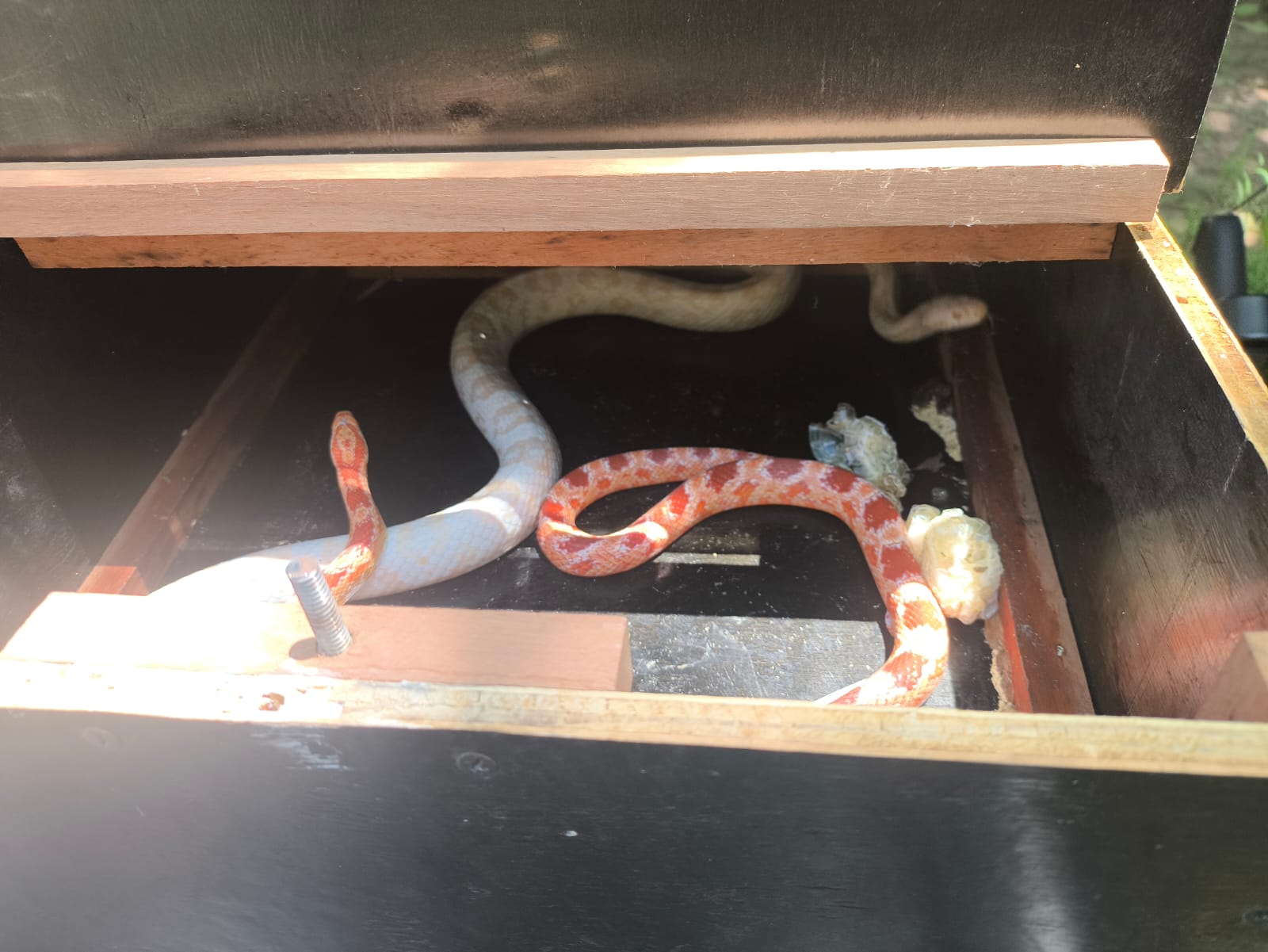 Os animais estavam envolvidos em meia-calça, forma irregular de ser acondicionados, mas apresentavam bom estado de saúde. As serpentes foram resgatadas com segurança e encaminhadas a um criador habilitado. Por se tratar de uma espécie exótica, os animais não podem ser soltos na natureza.