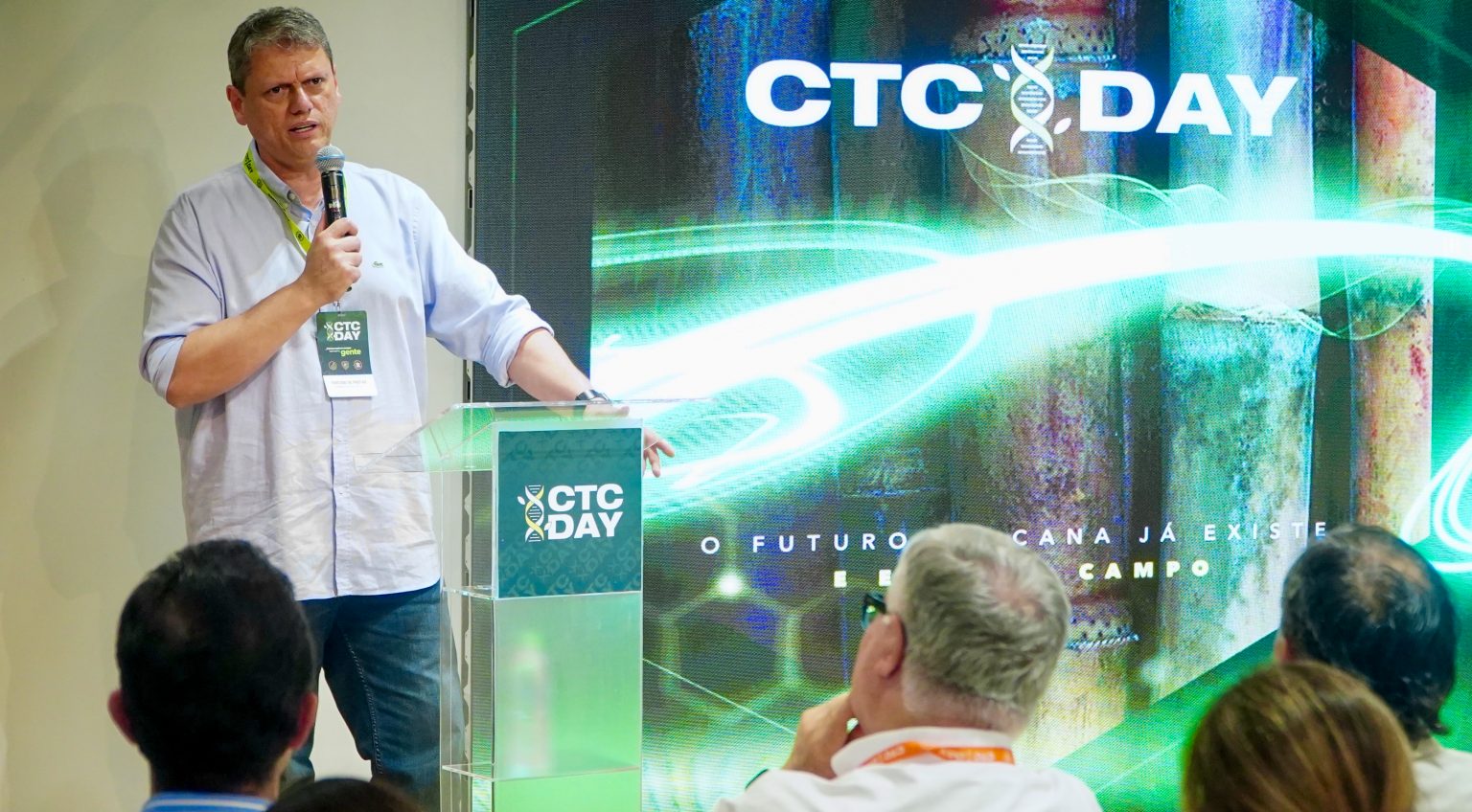 O Governo do Estado de São Paulo participou, nesta terça-feira (15), em Piracicaba, do CTC Day, promovido pelo Centro de Tecnologia Canavieira (CTC). Durante o evento, que reuniu investidores, clientes e acionistas do setor sucroenergético, o governador Tarcísio de Freitas destacou a importância do ciclo da cana-de-açúcar, a primeira fonte de energia renovável no país, para a descarbonização da economia. Tarcísio também apontou o papel fundamental da energia limpa, considerada o “pré-sal caipira”, para a expansão do estado.