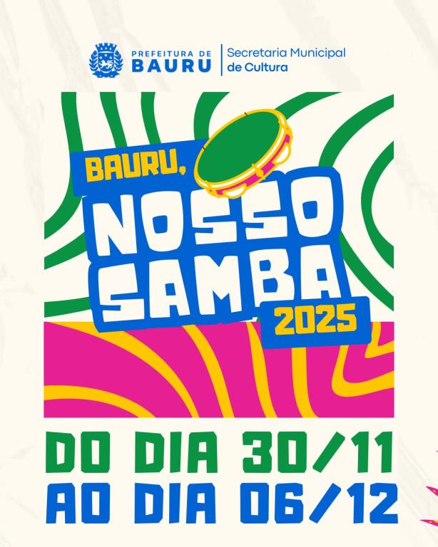 Com entrada gratuita, o evento “Bauru, Nosso Samba”, que comemora a Semana do Samba, é uma realização da Secretaria de Cultura do município.