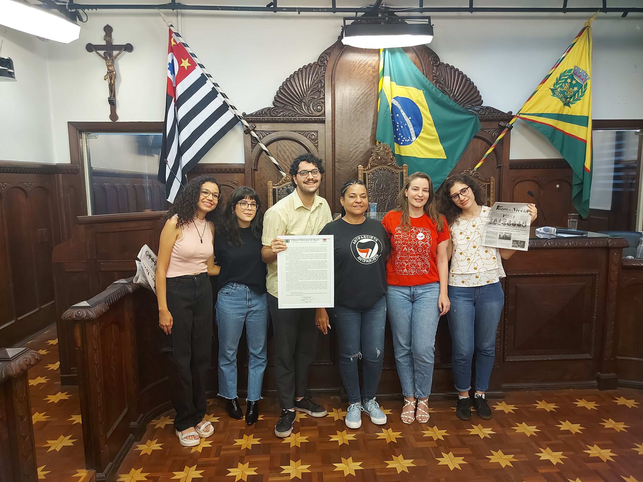 O tradicional jornal comunitário “Vozes do Nicéia” foi homenageado na tarde desta quinta-feira, dia 3, pela Câmara Municipal de Bauru. O veículo de comunicação recebeu uma Moção de Aplauso da vereadora Estela Almagro (PT) pela parceria ativa e efetiva da comunidade acadêmica com os moradores do bairro.