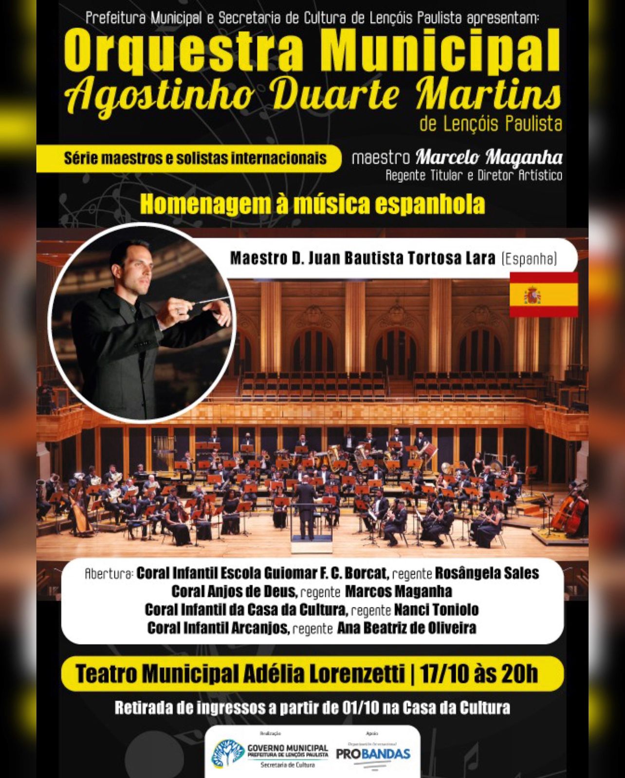 A Orquestra Municipal de Lençóis Paulista realizará mais uma edição da série “Maestros e Solistas Internacionais”. E, desta vez, será uma homenagem à música espanhola, com a presença do renomado maestro espanhol D. Juan Bautista Tortosa Lara.