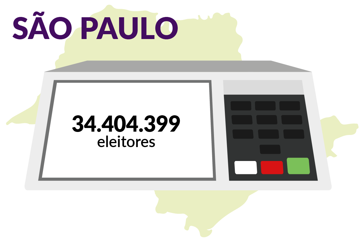 Maior colégio eleitoral do país, o estado de São Paulo possui 22% do eleitorado brasileiro. Só na Capital, São 9 milhões aptos a votar. No restante dos municípios paulistas são esperados 25 milhões se eleitores.