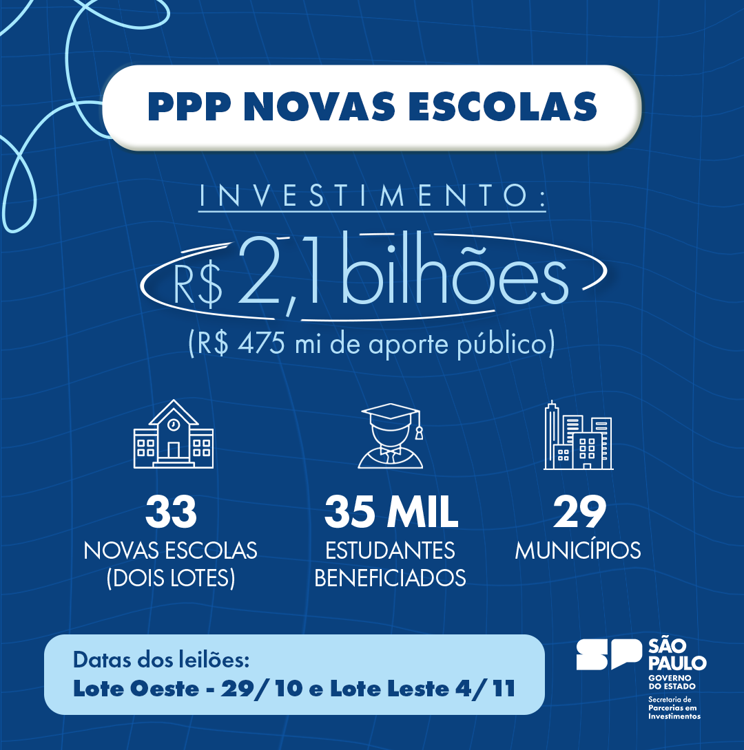 A maratona de leilões do Governo do Estado de São Paulo terá início nesta terça-feira (29) com o lançamento da Parceria Público-Privada (PPP) para a construção de 33 escolas estaduais para atender 35 mil estudantes nos ensinos fundamental e médio.
