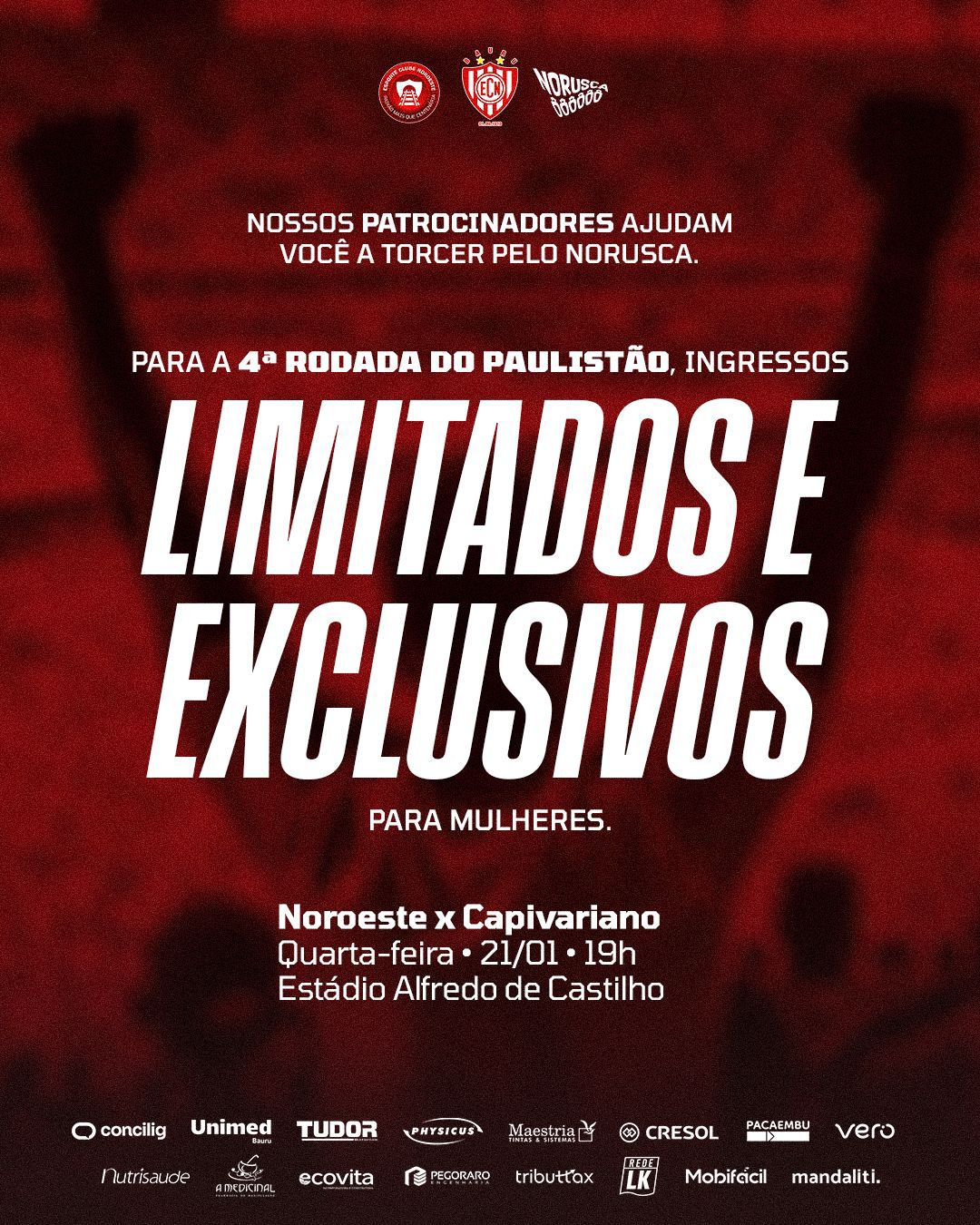 O jogo entre Noroeste x Capivariano, nesta quarta-feira (21), às 19h, contará com uma ação especial voltada exclusivamente para mulheres, reforçando a presença feminina nas arquibancadas da partida.