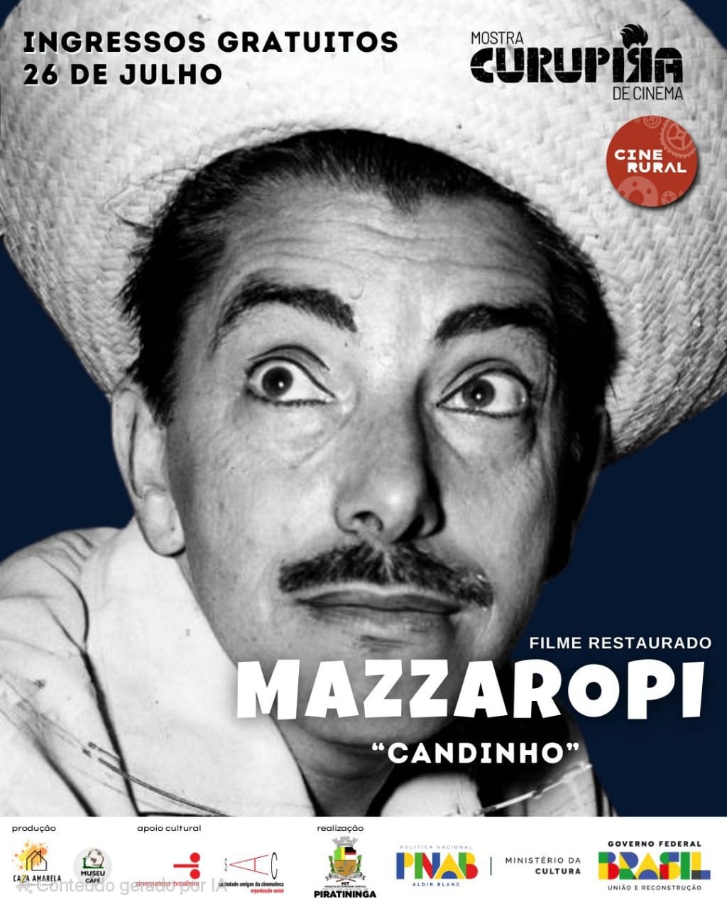 A exibição integra a programação da 1ª Mostra Curupira de Cinema, um evento que une memória, cultura popular, audiovisual independente e muito charme interiorano. Restaurado recentemente pela Cinemateca Brasileira, “Candinho” marca a primeira vez em que Mazzaropi interpretou o icônico personagem Jeca Tatu, um caipira ingênuo e sonhador que enfrenta desafios em São Paulo à procura de sua amada… e de um tesouro perdido!