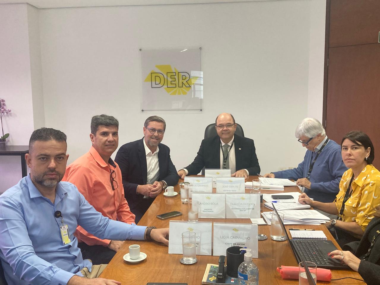 Nesta quarta-feira (27), o prefeito de Piratininga, Sandro Bola, e o vice-prefeito, Juninho Faria, estiveram em São Paulo em uma agenda de trabalho organizada pelo deputado federal Carlos Sampaio (PSD). O parlamentar acompanhou a comitiva piratiningana em reunião junto ao Departamento de Estradas e Rodagem (DER), onde foram recebidos pelo presidente do órgão, Sérgio Codelo.