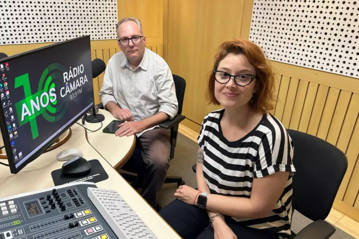 Como parte das comemorações dos 90 anos do programa A Voz do Brasil, o bloco da Câmara dos Deputados, que ocupa os últimos 20 minutos do histórico noticiário brasileiro, foi gravado na manhã desta sexta-feira (22) dentro do estúdio da Rádio Câmara Bauru. A apresentação foi do editor-chefe de A Voz do Brasil na Câmara dos Deputados, Marcio Achilles Sardi, e da jornalista Carol Garcia, da Rádio Câmara Bauru, com transmissão para todo o Brasil.