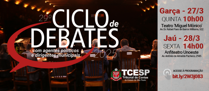 Lideranças políticas e agentes públicos de 83 municípios das regiões de Marília e Bauru participam, na quinta (27/3) e sexta-feira (28/3), de encontros regionais com parte da 29ª edição do Ciclo de Debates com Agentes Políticos e Dirigentes Municipais. O encontro contará com a presença do Presidente do Tribunal de Contas, Roque Citadini, membros do colegiado e equipe técnica.