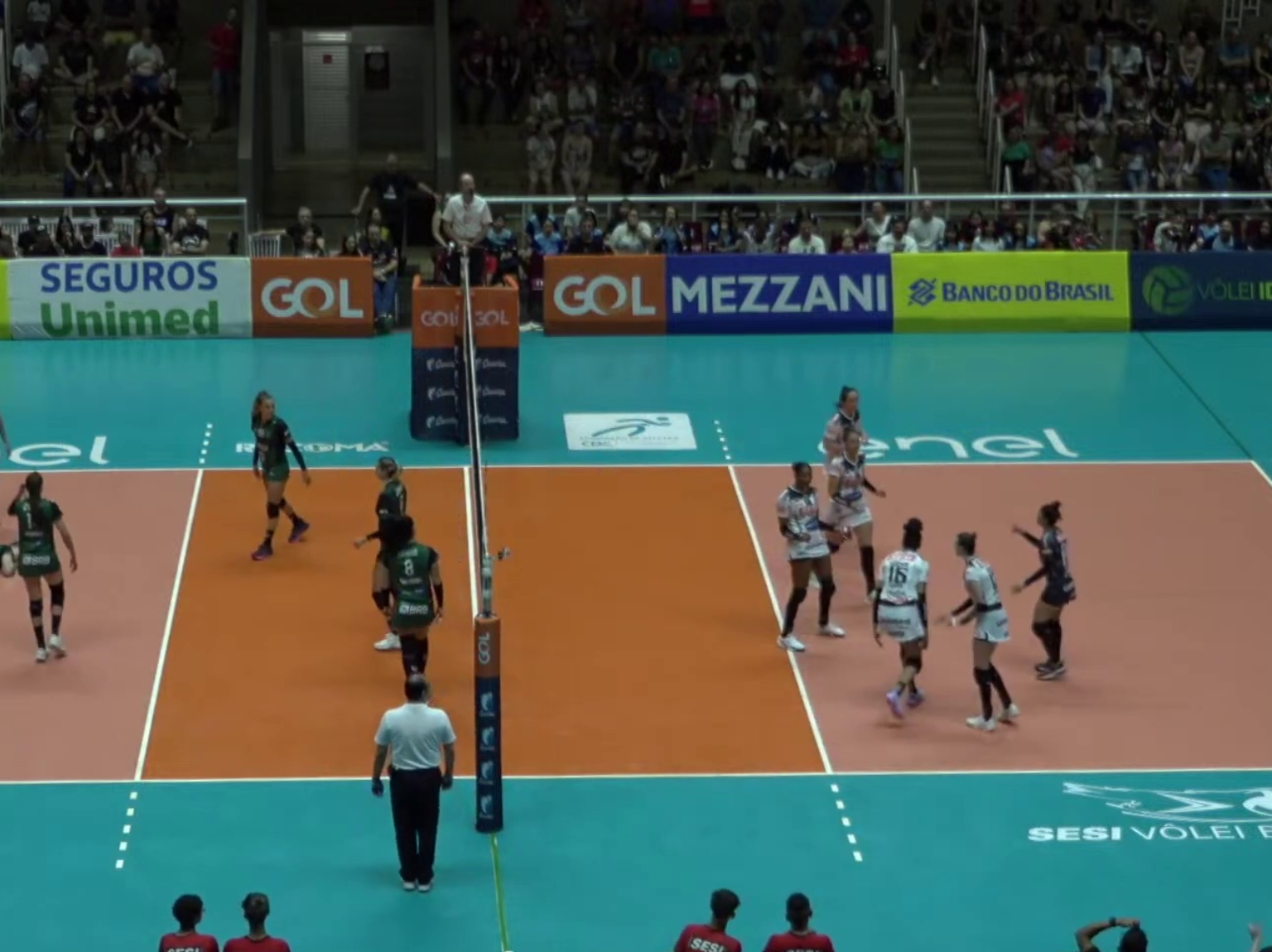 Mas Brasília seguiu na cola. Com bom trabalho defensivo, levaram a disputa no ponto a ponto até o final. Quando, em erro de ataque, as visitantes cederam o set para o Sesi, por 25 a 23.