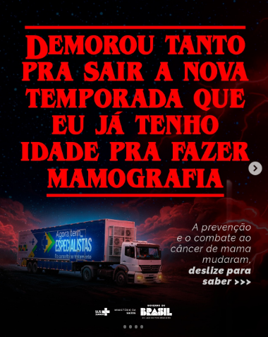 Nesse contexto, o uso de Stranger Things na recente campanha de conscientização sobre a mamografia segue uma tendência já consolidada: transformar temas de saúde pública em mensagens acessíveis, próximas e reconhecíveis para um público que responde melhor a formatos contemporâneos do que a abordagens convencionais.