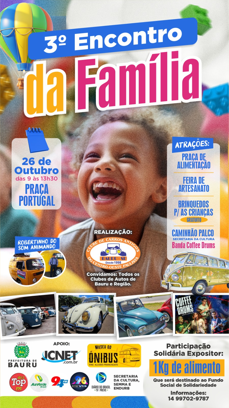 O clube de carros antigos do centro oeste paulista realizará o 3° encontro da Família neste domingo (26), das 9h às 13h30, na Praça Portugal.