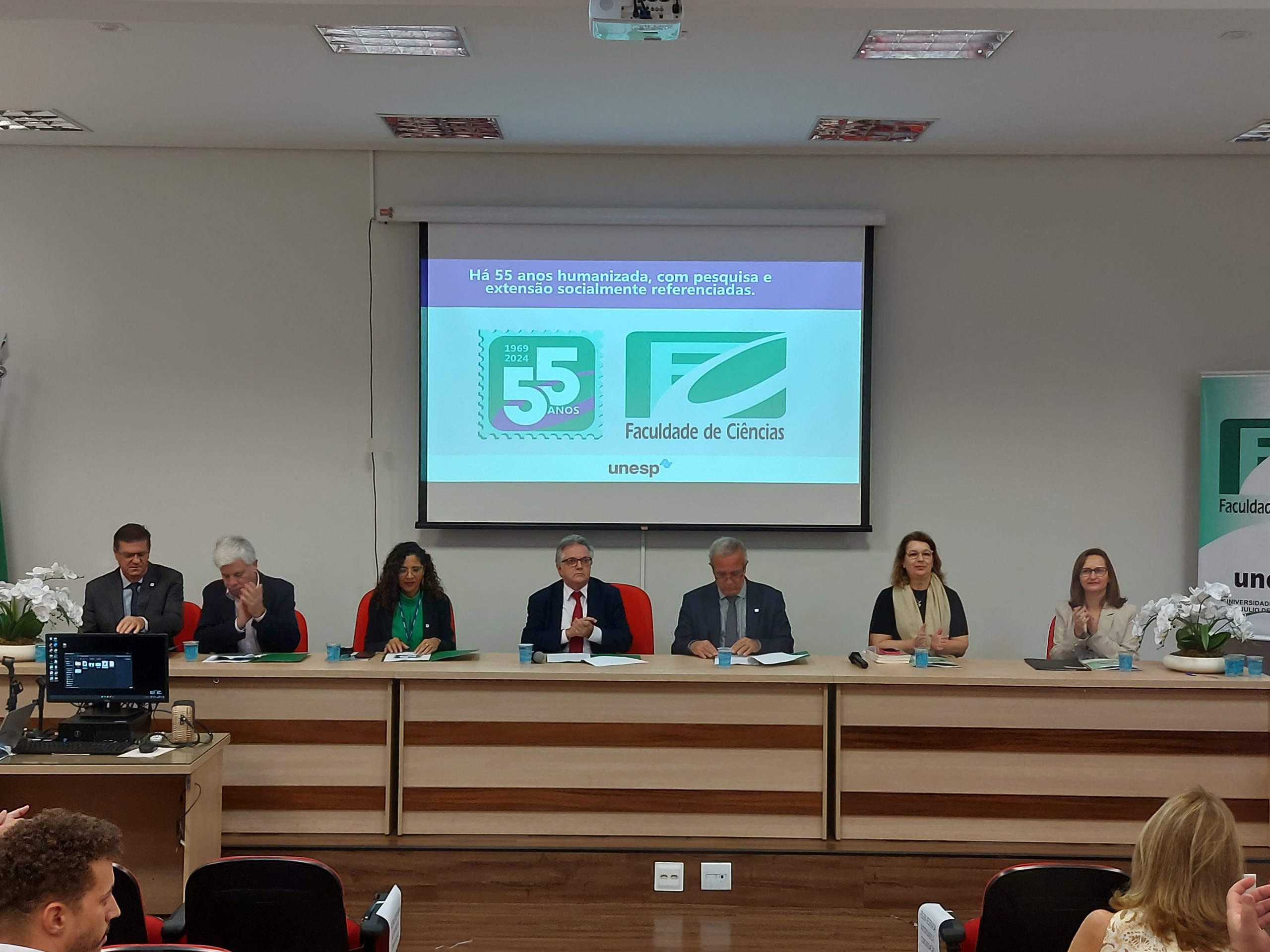 Em emocionante sessão solene, a Faculdade de Ciências da Unesp-Bauru comemorou hoje seus 55 anos de fundação. A cerimônia contou com a presença do reitor da Unesp, Pasqual Barreti.